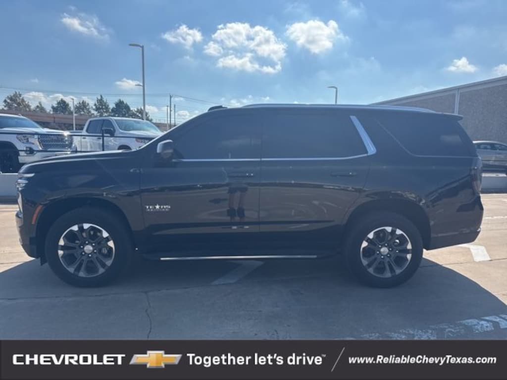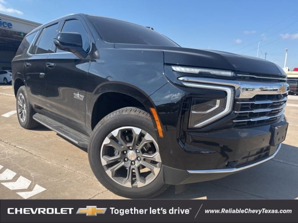 Certified. Black 2025 Chevrolet Tahoe LT RWD 10-Speed Automatic with Overdrive EcoTec3 5.3L V8 Jet Black w/Leather-Appointed Seat Trim, 1st & 2nd Row Color-Keyed Carpeted Floor Mats, 3-Spoke Wrapped Steering Wheel, 3rd Row Manual 60/40 Split-Folding Bench Seats, Automatic temperature control, Color-Keyed Carpeting Floor Covering, Floor Console w/Storage Area, Front Pedestrian & Bicyclist Braking, Frontal Driver & Outboard Passenger Airbags, Memory Settings for Driver, Navigation system: Google built-in compatibility (select service plan required, terms and limitations apply), Preferred Equipment Group 1LT, Premium audio system: Chevrolet Infotainment 3 Premium, Rear Power Liftgate, Remote Start, SiriusXM w/360L Trial Subscription, USB Ports, Wheels: 18 x 8.5 Bright Silver Painted Aluminum, Wireless Phone Charging.Recent Arrival! Odometer is 10827 miles below market average!Chevrolet Certified Pre-Owned Details:* Roadside Assistance* 24 months/24,000 miles (whichever comes first) Certified Pre-Owned Scheduled Maintenance Plan and 3 days/150 miles (whichever comes first) Vehicle Exchange Program. SiriusXM 3-month trial subscription.* Warranty Deductible: $0* 172 Point Inspection* Transferable Warranty* Limited Warranty: 12 Month/12,000 Mile (whichever comes first) from certified purchase date* Powertrain Limited Warranty: 72 Month/100,000 Mile (whichever comes first) from original in-service date* Vehicle HistoryAll of our vehicles at Reliable Chevrolet come with a 3 day/300 mile money back guarantee! If you don't like it - then we'll take it back! Vehicle must be returned to the dealer within 3 days or 300 miles in the same/original mechanical working condition. See dealer for complete details.