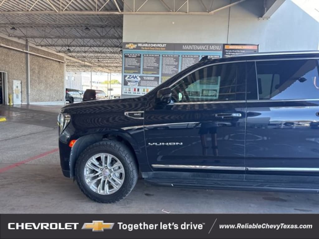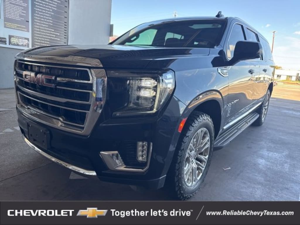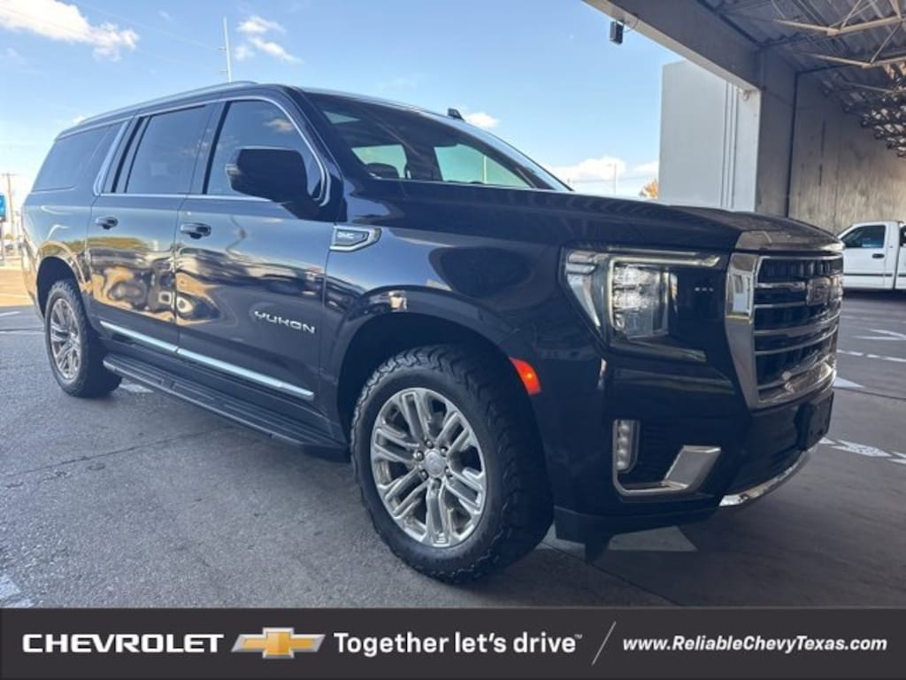 Certified. Midnight Blue Metallic 2021 GMC Yukon XL SLT RWD 10-Speed Automatic with Overdrive EcoTec3 5.3L V8 12-Way Power Seat Adjusters, 2 Presets For Outside Rearview Mirrors, 2 Presets For Power Driver Seat, 3rd Row 60/40 Power-Folding Split-Bench Seat, Bose 9-Speaker Stereo Audio System Feature, Bright Chrome Bodyside Moldings, Bright Front & Rear Door Sill Plates, Chrome Door Handles w/Body-Color Strip, Dual-Pane Panoramic Power Sunroof, Hands-Free Power Programmable Rear Liftgate, HD Surround Vision, Heated & Ventilated Driver & Front Passenger Seats, Heated 2nd Row Outboard Position Seats, Heated Automatic Steering Wheel, Heated Driver & Front Passenger Seats, Inside Rear-View Auto-Dimming Mirror, Navigation System, Outside Heated Power-Adjustable Mirrors, Power Liftgate, Power Release 2nd Row 60/40 Split-Folding Bench Seat, Power Tilt & Telescopic Steering Column, Preferred Equipment Group 4SA, Rear Pedestrian Alert, Safety Alert Seat, SLT Luxury Package, Universal Home Remote, Wheels: 20 x 9 6-Spoke Polished Aluminum.Recent Arrival! Odometer is 35359 miles below market average!GMC Certified Pre-Owned Details:* Vehicle History* Warranty Deductible: $0* Limited Warranty: 12 Month/12,000 Mile (whichever comes first) from certified purchase date* Transferable Warranty* 24 months/24,000 miles (whichever comes first) Certified Pre-Owned Scheduled Maintenance Plan and 3 days/150 miles (whichever comes first) Vehicle Exchange Program. SiriusXM 3-month trial subscription* Roadside Assistance* Powertrain Limited Warranty: 72 Month/100,000 Mile (whichever comes first) from original in-service date* 172 Point InspectionAll of our vehicles at Reliable Chevrolet come with a 3 day/300 mile money back guarantee! If you don't like it - then we'll take it back! Vehicle must be returned to the dealer within 3 days or 300 miles in the same/original mechanical working condition. See dealer for complete details.