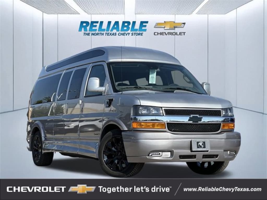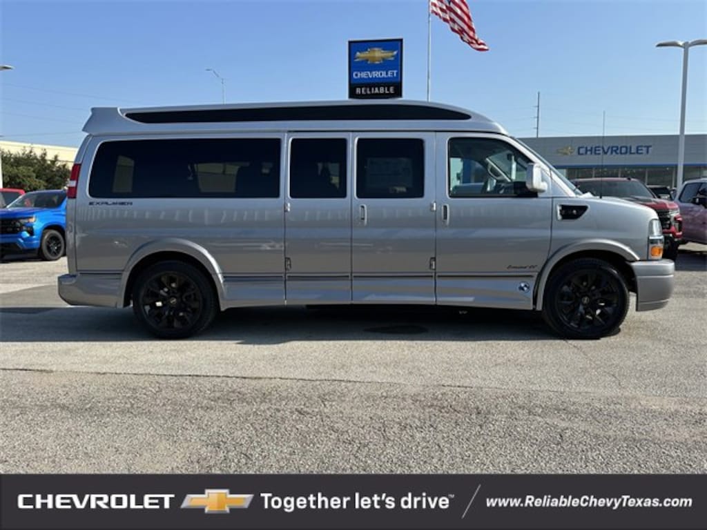 - 2025 Chevrolet Explorer Van Package - Explorer Luxury Conversion Package, 9 Passenger Seating, Silver Ice With A Special Fade Paint, Black Out Package, Full Body Cladding W/ Hide Away Power Retractable Boards, Full Front Bumper Cover, Vista Cruiser Sport roof With Full Panoramic Automotive Glass, Power Sunroof W/ Sun Screen, Big Body Leather Furniture, Diamond Stitching, Wireless Charging Pad, 4 USB Charging Ports, Performance Dual Exhaust, Alpine Infotainment Unit, 32" 4k Samsung HD TV, Sub-Woofer For TV Sound System, 110 Game Outlet With Inverter, Built In Revgen WIFI Hot Spot, 20 Chrome Wheels, 20" Michelin Cross Climate Tire Upgrade, X-SE Value Package, Eaton Soft Ride Suspension Enhancement. Disclosure - The original vehicle has been modified by Explorer Conversion Van and the price has been adjusted with these modifications and is compatible with GM Factory rebates and dealer discounts.$36,135