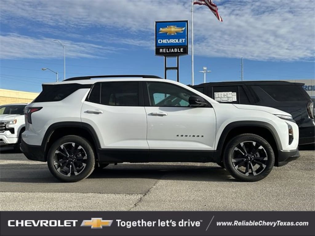 Priced below KBB Fair Purchase Price!Polar White 2026 Chevrolet Equinox RS Factory MSRP: $36,390You'll appreciate it's safety and convenience features! Chevrolet prioritized practicality, efficiency, and style by including: FWD 1.5L DOHC CVT 26/28 City/Highway MPG 2-Way Power Driver Lumbar Control Seat Adjuster, 4-Wheel Disc Brakes, 6 Speakers, ABS brakes, Air Conditioning, AM/FM radio: SiriusXM, Auto High-beam Headlights, Automatic temperature control, Brake assist, Delay-off headlights, Driver 8-Way Power Seat Adjuster, Dual front impact airbags, Dual front side impact airbags, Electronic Stability Control, Emergency communication system: OnStar and Chevrolet connected services capable, Evotex Seat Trim, Four wheel independent suspension, Front anti-roll bar, Front Bucket Seats, Front Center Armrest, Front dual zone A/C, Fully automatic headlights, Garage door transmitter, Heated door mirrors, Illuminated entry, Low tire pressure warning, Navigation System, Occupant sensing airbag, Outside temperature display, Overhead airbag, Panic alarm, Power door mirrors, Power driver seat, Power Liftgate, Power steering, Power windows, Premium audio system: Chevrolet Infotainment 3, Radio data system, Radio: 11.3 Diagonal Advanced Color LCD Display, Rear anti-roll bar, Rear window defroster, Remote keyless entry, Security system, SiriusXM w/360L Trial Subscription, Speed control, Speed-sensing steering, Sport steering wheel, Steering wheel mounted audio controls, Tachometer, Telescoping steering wheel, Tilt steering wheel, Traction control, Trip computer.We pride ourselves on providing excellent customer service. Please don't hesitate to give us a call. (972) 952-1500 Reliable Chevrolet conveniently located at 800 N. Central Expressway & Arapaho in Richardson, Texas. Check out our website for more information at ReliableChevyTexas.com.