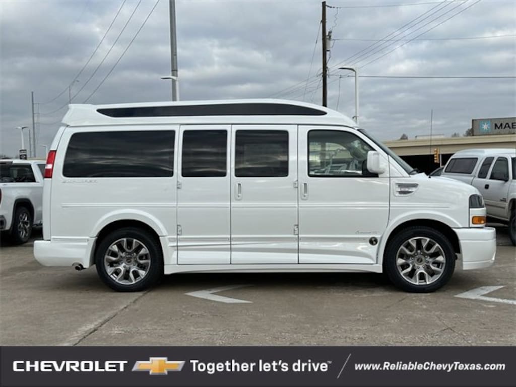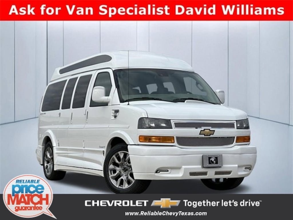 - 2026 Chevrolet Explorer Van Package - an Explorer Luxury Conversion package, White, Vista Cruiser Sport Roof WIth A Full Panoramic Automotive Glass, Medallion Series Wrap Around Ground Effects, Full Front Bumper Cover, Big Body Leather Furniture, Heated + P Lumbar + P Reclining Front Seats, Front Stereo Sub Woofer W/ Amp, Wireless Phone Charging Pad, 4 Rear USB Charging Ports, Alpine Infotainment Unit, Rear View Mirror/ Dash Cam, 32" 4k Samsung HD TV, Sub Woofer For TV Sound System, 110 Game Outlet With Inverter, 20" Chrome Wheels, 20" Michelin Cross Climate Tire Upgrade, X-SE Value Package, Eaton Soft Ride Suspension Enhancement, An Austin, Tx, Shreveport, Louisiana, And Little Rock, Arkansas, Luxury Conversion Van Dealer. Disclosure - The original vehicle has been modified by Explorer Conversion Van and the price has been adjusted with these modifications and is compatible with GM Factory rebates and dealer discounts.$30,663