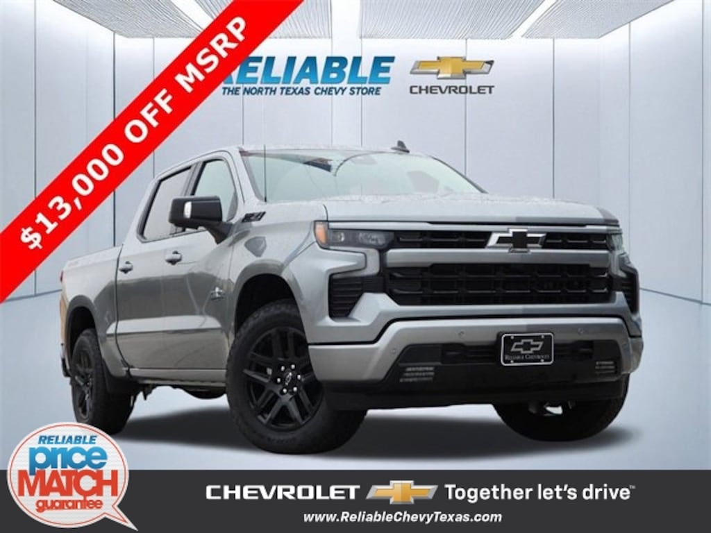 Priced below KBB Fair Purchase Price!Sterling Gray Metallic 2026 Chevrolet Silverado 1500 RST Factory MSRP: $65,200You'll appreciate it's safety and convenience features! Chevrolet prioritized practicality, efficiency, and style by including: 4WD EcoTec3 5.3L V8 10-Speed Automatic 10-Speed Automatic, 4WD, Black Cloth, 10-Way Power Driver Seat w/Lumbar, 12.3 Multicolor Reconfigurable Digital Display, 120-Volt Bed Mounted Power Outlet, 120-Volt Interior Power Outlet, 2 USB Data Ports, 4-Wheel Disc Brakes, 6 Speakers, 6-Speaker Audio System, ABS brakes, Air Conditioning, All-Star Edition, AM/FM radio: SiriusXM with 360L, Apple CarPlay/Android Auto, Auto High-beam Headlights, Auto-Locking Rear Differential, Automatic temperature control, Bluetooth® For Phone, Brake assist, Chevytec Spray-On Black Bedliner, Color-Keyed Carpeting Floor Covering, Convenience Package, Convenience Package II, Dark Appearance Package, Deep-Tinted Glass, Delay-off headlights, Dual Exhaust w/Polished Outlets, Dual front impact airbags, Dual front side impact airbags, Dual Rear USB Ports (Charge Only), Dual-Zone Automatic Climate Control, Electric Rear-Window Defogger, Electronic Cruise Control, Electronic Stability Control, Emergency communication system: OnStar, EZ Lift Power Lock & Release Tailgate, Front anti-roll bar, Front dual zone A/C, Front fog lights, Front Frame-Mounted Black Recovery Hooks, Front LED Fog Lamps, Front Rubberized Vinyl Floor Mats, Front wheel independent suspension, Fully automatic headlights, HD Rear Vision Camera, HD Surround Vision, Heated Driver & Front Outboard Passenger Seats, Heated Power-Adjustable Outside Mirrors, Heated Steering Wheel, Heavy-Duty Air Filter, High Capacity Suspension Package, High Gloss Black Mirror Caps, Hill Descent Control, Hitch Guidance, Hitch Guidance w/Hitch View, In-Vehicle Trailering System App, Inside Rear-View Mirror w/Tilt, Integrated Trailer Brake Controller, Keyless Open & Start, LED Cargo Area Lighting, Low tire pressure warning, Manual Tilt/Telescoping Steering Column, Occupant sensing airbag, Off-Road Suspension, OnStar Services Capable, Overhead airbag, Panic alarm, Perimeter Lighting, Power driver seat, Power Front Windows w/Driver Express Up/Down, Power Front Windows w/Passenger Express Down, Power Rear Windows w/Express Down, Power Sliding Rear Window w/Rear Defogger, Power steering, Power windows, Preferred Equipment Group 1SP, Premium audio system: Chevrolet Infotainment 3 Premium, Premium Bose 7-Speaker Sound System, Protection Package, Radio data system, Radio: Chevrolet Infotainment 3 Premium System, Rear 60/40 Folding Bench Seat (Folds Up), Rear Cross Traffic Braking, Rear Pedestrian Alert, Rear Rubberized-Vinyl Floor Mats, Rear Wheelhouse Liners, Rear window defroster, Remote keyless entry, Remote Vehicle Starter System, Safety Package, Security system, SiriusXM w/360L Trial Subscription, Speed control, Speed-sensing steering, Standard Suspension Package, Standard Tailgate, Steering Wheel Audio Controls, Steering wheel mounted audio controls, Teen Driver, Texas Edition Badging, Texas Edition Plus, Theft Deterrent System (Unauthorized Entry), Tire Pressure Monitoring System, Traction control, Trailer Camera Provisions, Trailer Side Blind Zone Alert, Trailering Package, Ultrasonic Front & Rear Park Assist, Universal Home Remote, Wheels: 20 x 9 High Gloss Black Painted Alum, Wheels: 20 x 9 Painted Aluminum, Wi-Fi Hot Spot Capable, Wrapped Steering Wheel, Z71 Off-Road Package.We pride ourselves on providing excellent customer service. Please don't hesitate to give us a call. (972) 952-1500 Reliable Chevrolet conveniently located at 800 N. Central Expressway & Arapaho in Richardson, Texas. Check out our website for more information at ReliableChevyTexas.com.