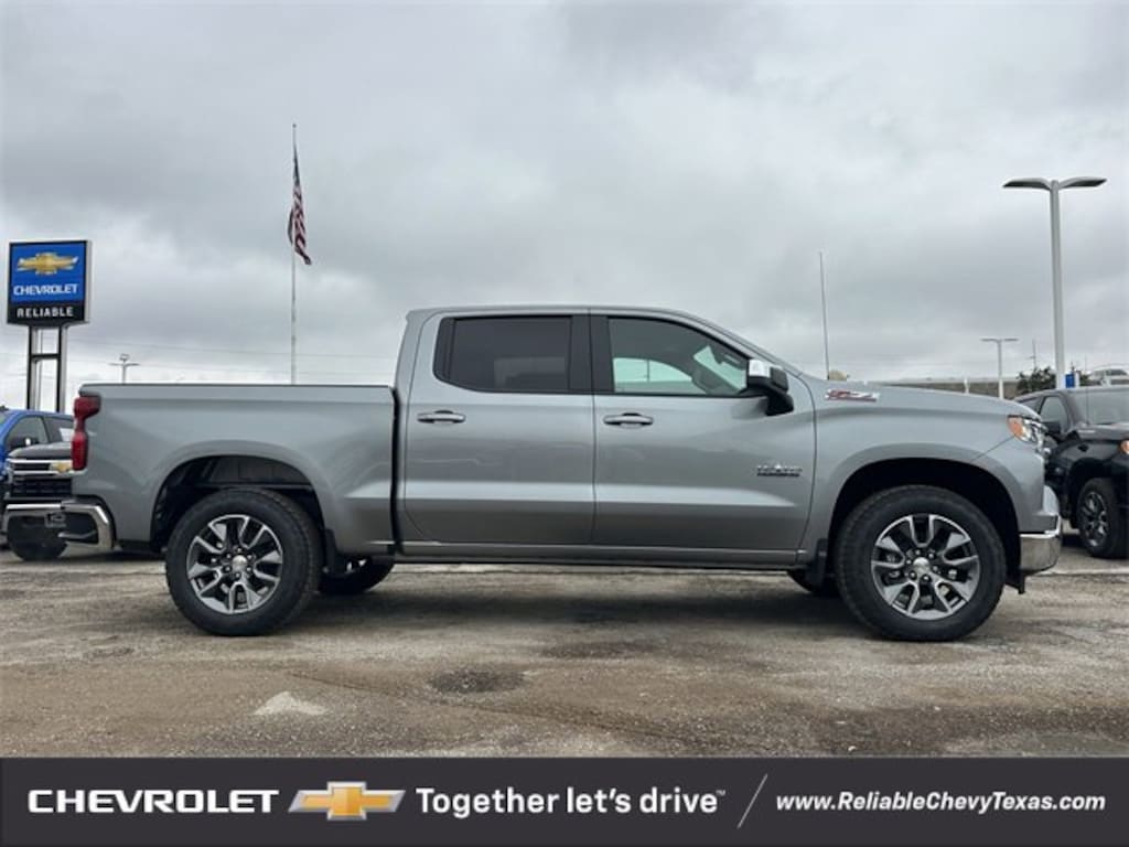 You'll appreciate it's safety and convenience features! Chevrolet prioritized practicality, efficiency, and style by including: 4WD EcoTec3 5.3L V8 10-Speed Automatic 10-Speed Automatic, 4WD, Jet Black Leather, 10-Way Power Driver Seat w/Lumbar, 12.3 Multicolor Reconfigurable Digital Display, 120-Volt Bed Mounted Power Outlet, 120-Volt Interior Power Outlet, 2 USB Data Ports, 4-Wheel Disc Brakes, 6 Speakers, 6-Speaker Audio System, ABS brakes, Air Conditioning, AM/FM radio: SiriusXM with 360L, Apple CarPlay/Android Auto, Auto High-beam Headlights, Auto-Locking Rear Differential, Automatic temperature control, Bluetooth® For Phone, Brake assist, Convenience Package, Convenience Package II, Delay-off headlights, Dual Exhaust w/Polished Outlets, Dual front impact airbags, Dual front side impact airbags, Dual Rear USB Ports (Charge Only), Dual-Zone Automatic Climate Control, Electric Rear-Window Defogger, Electronic Cruise Control, Electronic Stability Control, Emergency communication system: OnStar, EZ Lift Power Lock & Release Tailgate, Front anti-roll bar, Front dual zone A/C, Front wheel independent suspension, Fully automatic headlights, Heated Driver & Front Outboard Passenger Seats, Heated Steering Wheel, Heavy-Duty Air Filter, Hill Descent Control, Hitch Guidance, Hitch Guidance w/Hitch View, In-Vehicle Trailering System App, Keyless Open & Start, Leather Package, Leather-Appointed Front Seat Trim, LED Cargo Area Lighting, Low tire pressure warning, Manual Tilt/Telescoping Steering Column, Occupant sensing airbag, Off-Road Suspension, OnStar Services Capable, Overhead airbag, Panic alarm, Power driver seat, Power Front Windows w/Driver Express Up/Down, Power Front Windows w/Passenger Express Down, Power Rear Windows w/Express Down, Power Sliding Rear Window w/Rear Defogger, Power steering, Power windows, Premium audio system: Chevrolet Infotainment 3 Premium, Radio data system, Radio: Chevrolet Infotainment 3 Premium System, Rear window defroster, Remote keyless entry, Remote Start Package, Remote Vehicle Starter System, Security system, SiriusXM w/360L Trial Subscription, Speed control, Speed-sensing steering, Standard Suspension Package, Steering Wheel Audio Controls, Steering wheel mounted audio controls, Texas Edition Badging, Texas Edition Plus, Theft Deterrent System (Unauthorized Entry), Tire Pressure Monitoring System, Traction control, Trailering Package, Universal Home Remote, Up-Level Rear Seat w/Storage Package, Wheels: 18 x 8.5 Bright Silver Painted Aluminum, Wheels: 20 x 9 Painted Aluminum, Wi-Fi Hot Spot Capable, Wrapped Steering Wheel, Z71 Off-Road Package.