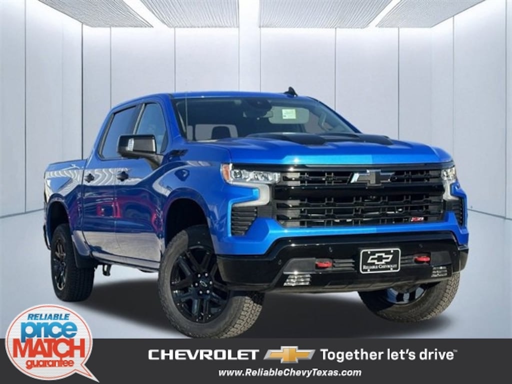 Riptide Blue 2026 Chevrolet Silverado 1500 LT Trail Boss Factory MSRP: $70,475You'll appreciate it's safety and convenience features! Chevrolet prioritized practicality, efficiency, and style by including: 4WD EcoTec3 5.3L V8 10-Speed Automatic 10-Speed Automatic, 4WD, Black Leather, 12.3 Multicolor Reconfigurable Digital Display, 120-Volt Bed Mounted Power Outlet, 120-Volt Interior Power Outlet, 2 USB Data Ports, 220 Amp Alternator, 4-Wheel Disc Brakes, 6-Speaker Audio System, ABS brakes, Air Conditioning, AM/FM radio: SiriusXM with 360L, Apple CarPlay/Android Auto, Auto High-beam Headlights, Auto-Locking Rear Differential, Automatic temperature control, Bluetooth® For Phone, Brake assist, Convenience Package, Convenience Package II, Delay-off headlights, Dual front impact airbags, Dual front side impact airbags, Dual-Zone Automatic Climate Control, Electric Rear-Window Defogger, Electronic Cruise Control, Electronic Stability Control, Emergency communication system: OnStar, Front anti-roll bar, Front dual zone A/C, Front fog lights, Front wheel independent suspension, Fully automatic headlights, HD Surround Vision, Heated Steering Wheel, Heavy-Duty Air Filter, Hill Descent Control, Hitch Guidance, Leather Package, Leather-Appointed Front Seat Trim, LED Cargo Area Lighting, Low tire pressure warning, LT Trail Boss Premium Package, Manual Tilt/Telescoping Steering Column, Occupant sensing airbag, OnStar Services Capable, Overhead airbag, Panic alarm, Perimeter Lighting, Power driver seat, Power steering, Power Sunroof, Power Tailgate, Power windows, Premium audio system: Chevrolet Infotainment 3 Premium, Premium Bose 7-Speaker Sound System, Protection Package, Radio data system, Radio: Chevrolet Infotainment 3 Premium System, Rear Cross Traffic Braking, Rear Pedestrian Alert, Rear Wheelhouse Liners, Rear window defroster, Remote keyless entry, Remote Vehicle Starter System, Safety Package, Security system, Speed control, Speed-sensing steering, Steering Wheel Audio Controls, Steering wheel mounted audio controls, Suspension Package, Tire Pressure Monitoring System, Traction control, Trailer Camera Provisions, Trailer Side Blind Zone Alert, Trailering Package, Universal Home Remote, Wi-Fi Hot Spot Capable, Wireless Charging, Wrapped Steering Wheel.We pride ourselves on providing excellent customer service. Please don't hesitate to give us a call. (972) 952-1500 Reliable Chevrolet conveniently located at 800 N. Central Expressway & Arapaho in Richardson, Texas. Check out our website for more information at ReliableChevyTexas.com.