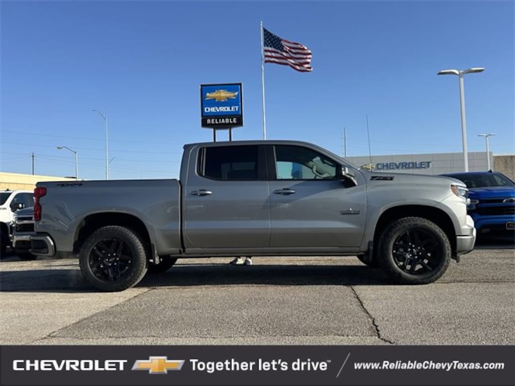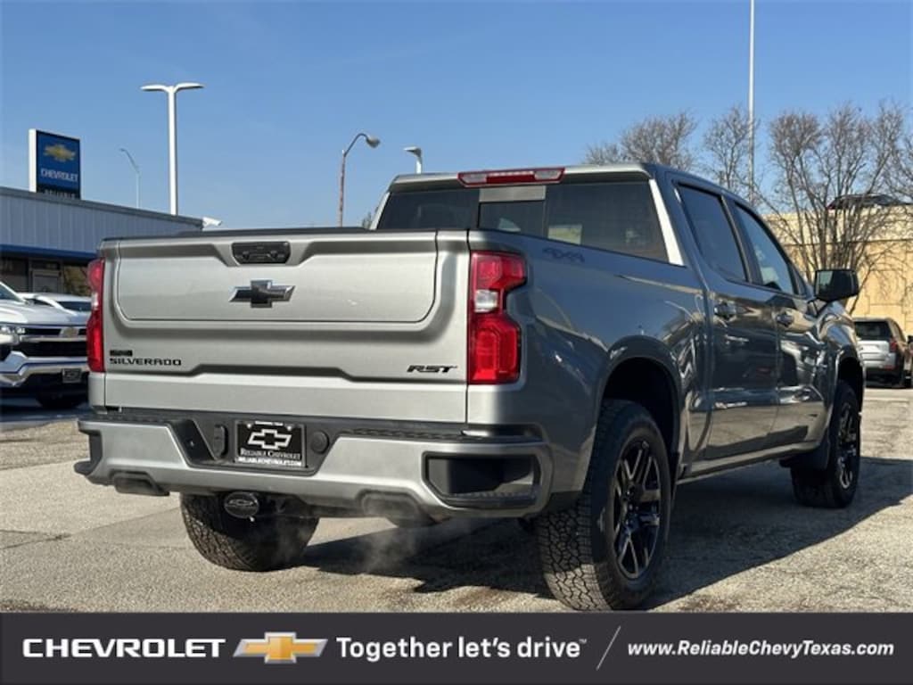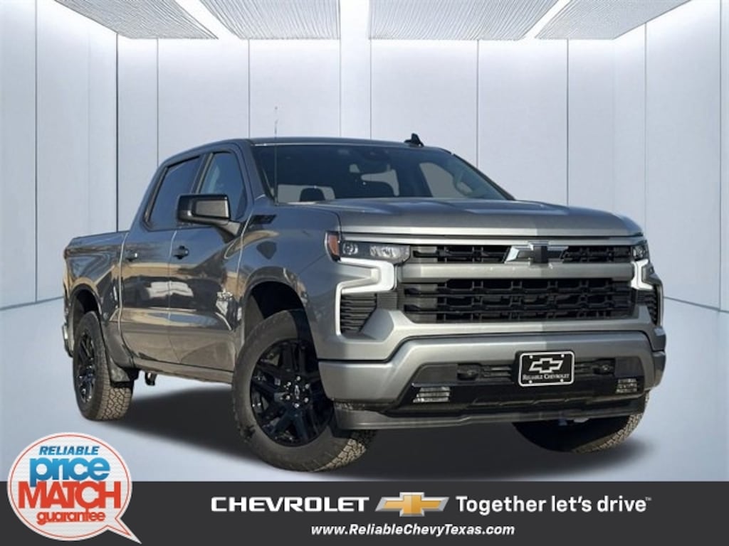 Sterling Gray Metallic 2026 Chevrolet Silverado 1500 RST Factory MSRP: $63,835You'll appreciate it's safety and convenience features! Chevrolet prioritized practicality, efficiency, and style by including: 4WD EcoTec3 5.3L V8 10-Speed Automatic 10-Speed Automatic, 4WD, Jet Black Cloth, 12.3 Multicolor Reconfigurable Digital Display, 120-Volt Bed Mounted Power Outlet, 120-Volt Interior Power Outlet, 2 USB Data Ports, 4-Wheel Disc Brakes, 6 Speakers, 6-Speaker Audio System, ABS brakes, Air Conditioning, AM/FM radio: SiriusXM with 360L, Apple CarPlay/Android Auto, Auto High-beam Headlights, Auto-Locking Rear Differential, Automatic temperature control, Bluetooth® For Phone, Brake assist, Convenience Package, Convenience Package II, Dark Appearance Package, Delay-off headlights, Dual front impact airbags, Dual front side impact airbags, Dual-Zone Automatic Climate Control, Electric Rear-Window Defogger, Electronic Cruise Control, Electronic Stability Control, Emergency communication system: OnStar, Front anti-roll bar, Front dual zone A/C, Front fog lights, Front wheel independent suspension, Fully automatic headlights, Heated Steering Wheel, Heavy-Duty Air Filter, High Capacity Suspension Package, Hill Descent Control, Hitch Guidance, LED Cargo Area Lighting, Low tire pressure warning, Manual Tilt/Telescoping Steering Column, Occupant sensing airbag, Off-Road Suspension, OnStar Services Capable, Overhead airbag, Panic alarm, Power driver seat, Power steering, Power windows, Premium audio system: Chevrolet Infotainment 3 Premium, Premium Bose 7-Speaker Sound System, Protection Package, Radio data system, Radio: Chevrolet Infotainment 3 Premium System, Rear Wheelhouse Liners, Rear window defroster, Remote keyless entry, Remote Vehicle Starter System, Security system, Speed control, Speed-sensing steering, Steering Wheel Audio Controls, Steering wheel mounted audio controls, Texas Edition Badging, Texas Edition Plus, Tire Pressure Monitoring System, Traction control, Trailering Package, Universal Home Remote, Wheels: 20 x 9 Painted Aluminum, Wi-Fi Hot Spot Capable, Wrapped Steering Wheel, Z71 Off-Road Package.We pride ourselves on providing excellent customer service. Please don't hesitate to give us a call. (972) 952-1500 Reliable Chevrolet conveniently located at 800 N. Central Expressway & Arapaho in Richardson, Texas. Check out our website for more information at ReliableChevyTexas.com.