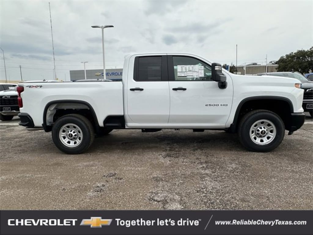 You'll appreciate its safety and convenience features! Chevrolet prioritized practicality, efficiency, and style by including: 4WD 6.6L V8 10-Speed Automatic 10-Speed Automatic, 4WD, Jet Black Vinyl, 120-Volt Bed Mounted Power Outlet, 120-Volt Interior Power Outlet, 3.5 Diagonal Monochromatic Display DIC, 4-Wheel Disc Brakes, 6-Speaker Audio System, ABS brakes, Air Conditioning, AM/FM radio, Apple CarPlay/Android Auto, Auto High-beam Headlights, Black Front Bumper, Black Rear Bumper, Bluetooth® For Phone, Brake assist, Deep-Tinted Glass, Delay-off headlights, Dual front impact airbags, Dual front side impact airbags, Durabed Pickup Bed, Electric Rear-Window Defogger, Electronic Cruise Control w/Set & Resume Speed, Electronic Stability Control, Emergency communication system: OnStar, EZ Lift Power Lock & Release Tailgate, Front anti-roll bar, Front wheel independent suspension, Fully automatic headlights, Heated Vertical Trailering Mirrors, Locking Tailgate, Low tire pressure warning, Manual Tilt-Wheel Steering Column, Occupant sensing airbag, Overhead airbag, Panic alarm, Power Door Locks, Power Front Windows w/Driver Express Up/Down, Power Rear Windows w/Express Down, Power steering, Power windows, Premium audio system: Chevrolet Infotainment 3, Push Button Start, Radio: Chevrolet Infotainment 3 System, Remote Keyless Entry, Remote keyless entry, Speed control, Suspension Package, Traction control, WT Convenience Package.