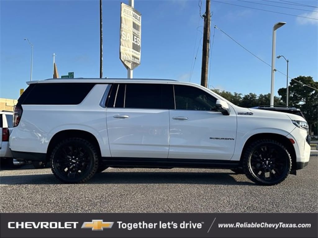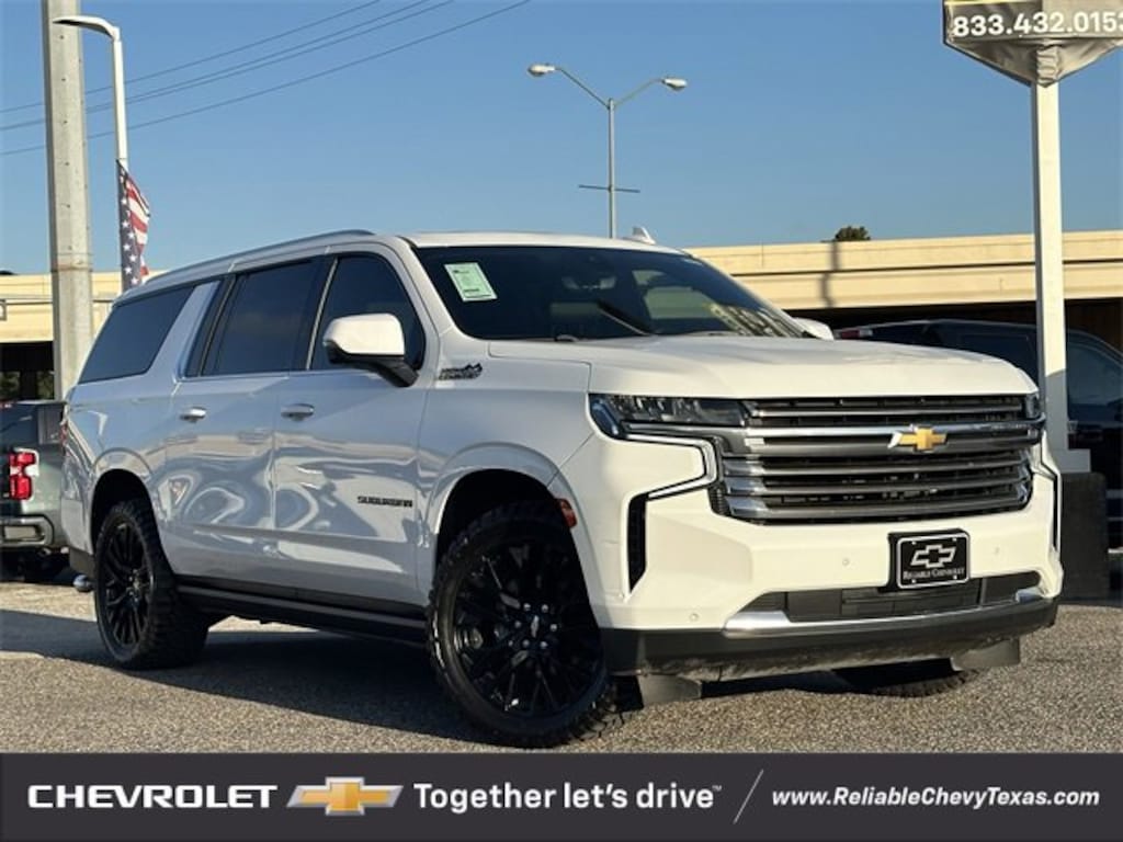 Summit White 2022 Chevrolet Suburban High Country 4WD 10-Speed Automatic with Overdrive EcoTec3 6.2L V8 15 Diagonal Multi-Color Head-Up Display, 1st & 2nd Row Color-Keyed Carpeted Floor Mats, 2-Speed Active Electronic AutoTrac Transfer Case, 3rd Row 60/40 Power-Folding Split-Bench, Automatic Stop/Start, Bose 10-Speaker Surround w/CenterPoint, Bright Front & Rear Door Sill Plates, Chrome Door Handles w/Body-Color Strip, Color-Keyed Carpeting Floor Covering, Driver & Front Outboard Passenger Airbags, Dual Exhaust System, Enhanced Driver Information Center, Floor Console, Front & Rear Park Assist, Hands-Free Rear Power Programmable Liftgate, HD Surround Vision, Heated & Ventilated Driver & Front Passenger Seats, Heated 2nd Row Outboard Seats, Heated Driver & Front Passenger Seats, Heated Steering Wheel, Hill Descent Control, Infotainment Display, Inside Rearview Auto-Dimming Rear Camera Mirror, Lane Change Alert w/Side Blind Zone Alert, Leather-Wrapped Steering Wheel, LED Daytime Running Lamps, Memory Settings, Outside Heated Power-Adjustable Mirrors, Power Release 2nd Row Bucket Seats, Power Tilt & Telescopic Steering Column, Preferred Equipment Group 3LZ, Rear Camera Mirror Washer, Rear Cross Traffic Alert, Rear Pedestrian Alert, Remote Start, Safety Alert Seat, SiriusXM Radio w/360L, Start/Stop System Disable Button, Universal Home Remote, Wireless Charging.Odometer is 7401 miles below market average!All of our vehicles at Reliable Chevrolet come with a 3 day/300 mile money back guarantee! If you don't like it - then we'll take it back! Vehicle must be returned to the dealer within 3 days or 300 miles in the same/original mechanical working condition. See dealer for complete details.