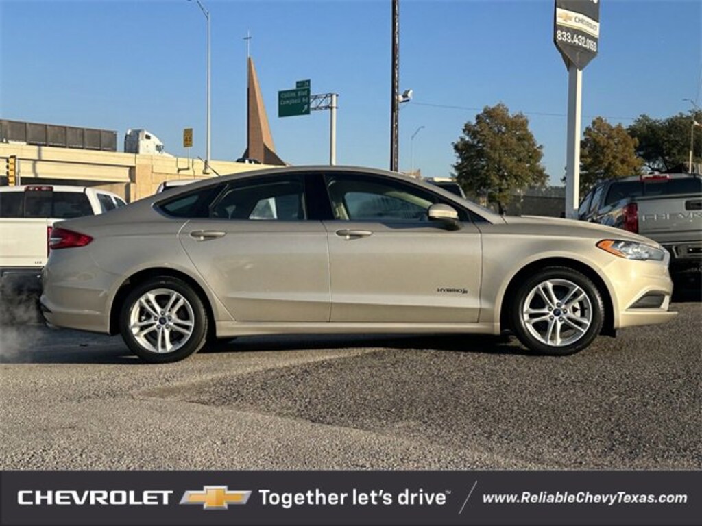 New Price! White Gold Metallic 2018 Ford Fusion Hybrid S FWD E-CVT Automatic I4 Hybrid I4 Hybrid, ABS brakes, Automatic temperature control, Exterior Parking Camera Rear, Fully automatic headlights, Power steering, Power windows, Remote keyless entry, Steering wheel mounted audio controls, Wheels: 17 Sparkle Silver Painted Aluminum.Odometer is 3280 miles below market average! 43/41 City/Highway MPGAwards:* 2018 KBB.com 10 Most Awarded Brands * 2018 KBB.com Brand Image AwardsAll of our vehicles at Reliable Chevrolet come with a 3 day/300 mile money back guarantee! If you don't like it - then we'll take it back! Vehicle must be returned to the dealer within 3 days or 300 miles in the same/original mechanical working condition. See dealer for complete details.
