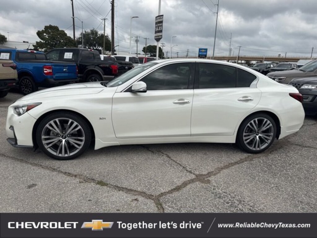 Majestic White 2018 INFINITI Q50 Sport RWD 7-Speed Automatic with Manual Shift 3.0L V6 60/40 Split-Folding Rear Seats, Essential Package (3.0t SPORT), Heated Front Seats, Heated Steering Wheel, INFINITI InTouch Navigation System, Power moonroof, Remote Engine Start.