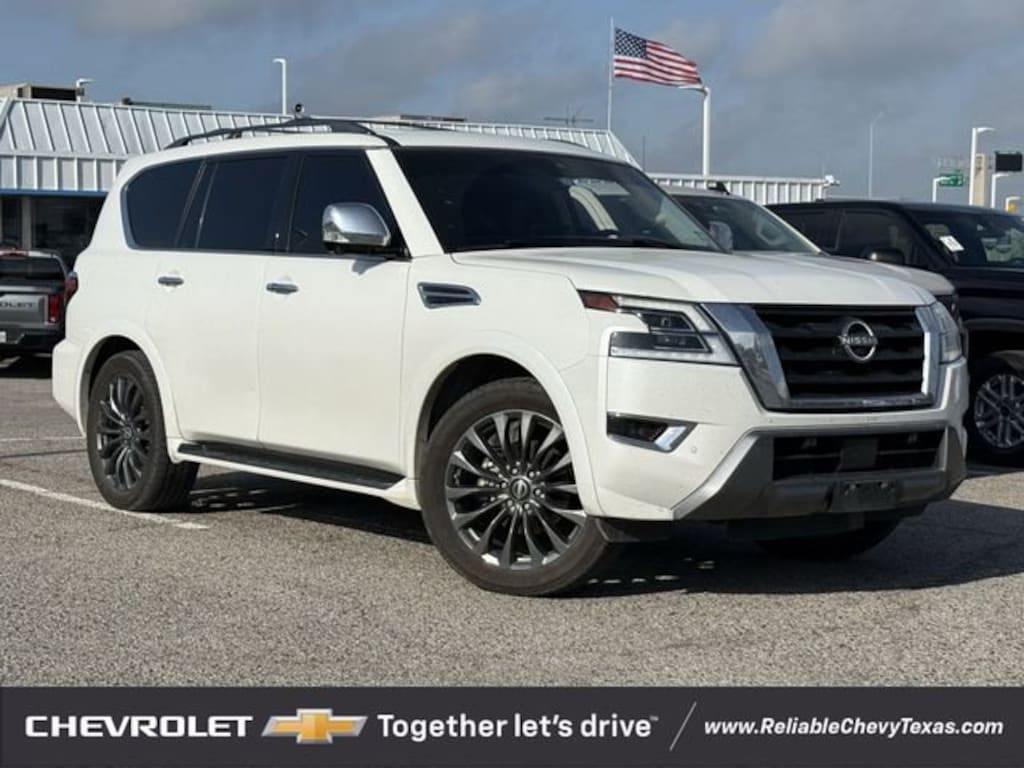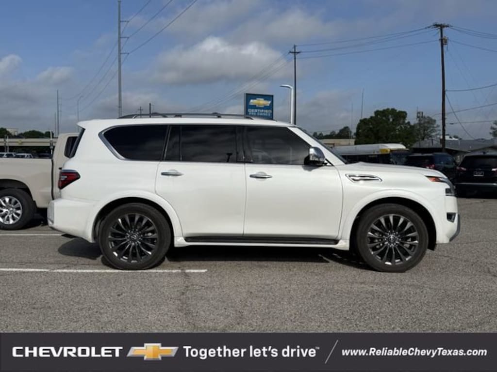 Recent Arrival! Clean CARFAX. CARFAX One-Owner.Just Traded In, 1-Owner, Must See, Very Rare!, 360 Camera, Alloy Wheels, Heated Seats, Remote Start, Sunroof/Moonroof, Leather, Rear DVD, 22 Wheels, 4D Sport Utility, 5.6L V8 DOHC 32V LEV3-ULEV125 400hp, 2nd Row Captain's Chairs, 2nd Row Center Console w/Padded Armrest, 3rd row seats: split-bench, A/V remote, Alloy wheels, Auto-dimming Rear-View mirror, Auto-leveling suspension, Bose 13-Speaker Premium Audio System, Captain's Chairs Package, Cargo Package, Exterior Parking Camera Rear, Front Bucket Seats, Headphones, Heated front seats, Heated rear seats, Memory seat, Navigation System, NissanConnect featuring Apple CarPlay and Android Auto, Power driver seat, Power Liftgate, Power moonroof, Power passenger seat, Premium audio system: Bose, Quilted Leather Seat Trim, Radio: NissanConnect w/SiriusXM, Rear-Seat Entertainment, Reclining 3rd row seat, Ventilated front seats, Wheels: 22 x 8J Machine-Faced w/Tinted Clear Coat.Aspen White Tricoat RWD 7-Speed Automatic 5.6L V8 DOHC 32V LEV3-ULEV125 400hpAll of our vehicles at Reliable Chevrolet come with a 3 day/300 mile money back guarantee! If you don't like it - then we'll take it back! Vehicle must be returned to the dealer within 3 days or 300 miles in the same/original mechanical working condition. See dealer for complete details. - Multi-Point Inspection - Reconditioned - State Inspected - Lube, Oil, & Filter Service - Vehicle Detail.We pride ourselves on providing excellent customer service. Please don't hesitate to give us a call. (972) 952-1500 Reliable Chevrolet conveniently located at 800 N. Central Expressway & Arapaho in Richardson, Texas. Check out our website for more information at ReliableChevyTexas.com.