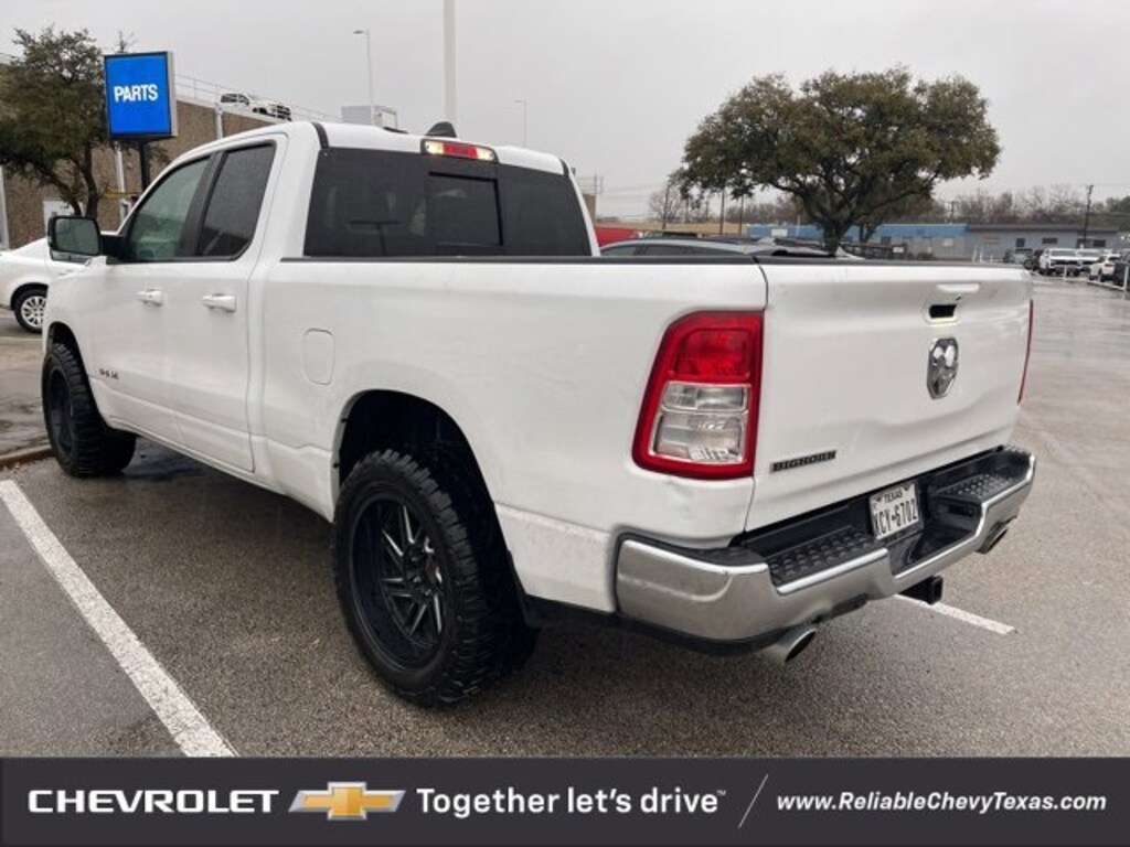 Recent Arrival! Clean CARFAX.Just Traded In, Must See, Very Rare!, Alloy Wheels, Remote Start, 20 Wheels, Bedliner, Tow Package, Custom Wheels, 4D Quad Cab, HEMI 5.7L V8 Multi Displacement VVT, 115V Auxiliary Power Outlet, 115V Auxiliary Rear Power Outlet, 400W Inverter, 4G LTE Wi-Fi Hot Spot, 8.4 Touchscreen Display, Air Conditioning ATC w/Dual Zone Control, Alloy wheels, Apple CarPlay, Auto-Dimming Exterior Driver Mirror, Auto-Dimming Rear-View Mirror, Big Horn Badge, Big Horn Level B Equipment Group (DISC), Black Premium Power Mirrors (GUL), Bluetooth Handsfree Phone & Audio, Class IV Receiver Hitch, Cluster 7.0 TFT Color Display, Connectivity - US/Canada, Exterior Mirrors Courtesy Lamps, Exterior Mirrors w/Supplemental Signals, Foam Bottle Insert (Door Trim Panel), For More Info, Call 800-643-2112, Glove Box Lamp, Google Android Auto, GPS Navigation, Heated Front Seats, Heated Steering Wheel, Integrated Center Stack Radio, Media Hub w/2 Charge Only USBs, Navigation System, ParkSense Front/Rear Park Assist w/Stop, ParkView Rear Back-Up Camera, Power 2-Way Driver Lumbar Adjust, Power 8-Way Driver Seat, Power Adjustable Pedals, Quick Order Package 24Z Big Horn, Radio: Uconnect 5 W w/8.4 Display, Rear Dome w/On/Off Switch Lamp, Rear Power Sliding Window, Rear Window Defroster, Remote Start System, Security Alarm, SiriusXM Radio Service, SiriusXM Satellite Radio, Sun Visors w/Illuminated Vanity Mirrors, Universal Garage Door Opener, USB Host Flip.Bright White Clearcoat RWD 8-Speed Automatic HEMI 5.7L V8 Multi Displacement VVTAll of our vehicles at Reliable Chevrolet come with a 3 day/300 mile money back guarantee! If you don't like it - then we'll take it back! Vehicle must be returned to the dealer within 3 days or 300 miles in the same/original mechanical working condition. See dealer for complete details. - Multi-Point Inspection - Reconditioned - State Inspected - Lube, Oil, & Filter Service - Vehicle Detail.We pride ourselves on providing excellent customer service. Please don't hesitate to give us a call. (972) 952-1500 Reliable Chevrolet conveniently located at 800 N. Central Expressway & Arapaho in Richardson, Texas. Check out our website for more information at ReliableChevyTexas.com.