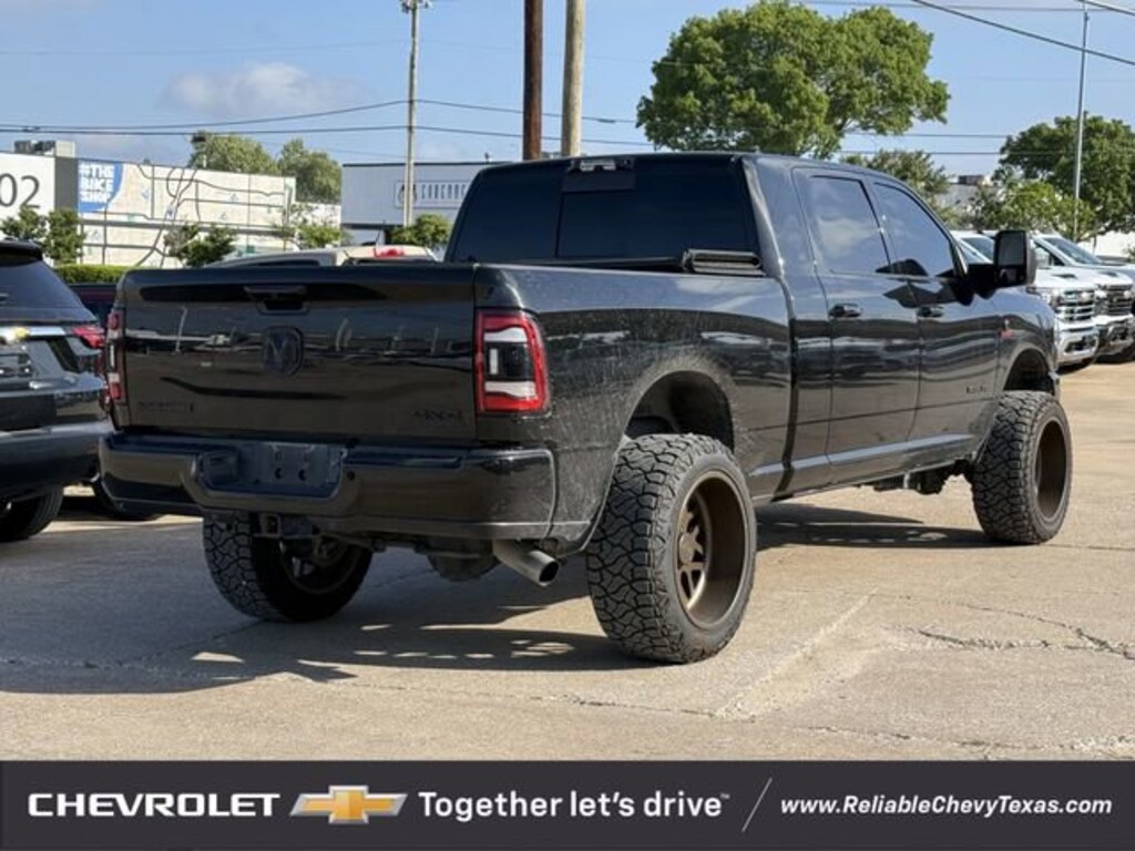 Recent Arrival! CARFAX One-Owner.New Tires, LIFTED, Just Traded In, 1-Owner, Must See, Very Rare!, 360 Camera, **LIFTED**, Alloy Wheels, Heated Seats, Remote Start, Sunroof/Moonroof, Leather, Power Running Boards, 22 Wheels, Tow Package, 4x4, Custom Wheels, Step Rails, Ventilated Seats, 4D Mega Cab, Cummins 6.7L I6 Turbodiesel, 4WD, 10 Speakers, 12 Touchscreen Display, 4G LTE Wi-Fi Hot Spot, Adaptive Cruise Control w/Stop, Adaptive Steering System, Alexa Built-In, Alloy wheels, Apple CarPlay, Auto Adjust In Reverse Exterior Mirrors, Auto Dim Exterior Mirror, Auto High Beam Headlamp Control, Auto Power-Folding Mirrors, Auto-Dimming Exterior Passenger Mirror, Black Exterior Truck Badging, Black Headlamp Bezels, Black Interior Accents, Black RAM Head Tailgate Badge, Black Tail Lamp Bezels, Black Wheel Center Hub, Blind Spot & Cross Path Detection, Body Color Grille Surround, Center Stop Lamp w/Cargo View Camera, Chrome Exterior Mirrors, Connected Travel & Traffic Services, Connectivity - US/Canada, Disassociated Touchscreen Display, Exterior Mirrors Courtesy Lamps, Exterior Mirrors w/Heating Element, Exterior Mirrors w/Memory, Exterior Mirrors w/Supplemental Signals, Foam Bottle Insert (Door Trim Panel), For Details, Visit DriveUconnect.com, For More Info, Call 800-643-2112, Forward & Reverse Utility Lights, Front LED Fog Lamps, Front Performance Tuned Shock Absorbers, Full Speed Forward Collision Warning Plus, Global Telematics Box Module (TBM), Gloss Black Grille Billets/Accents, Google Android Auto, GPS Antenna Input, GPS Navigation, HD Radio, Hill Descent Control, Integrated Voice Command w/Bluetooth, Lane Keep Assist, Laramie Level 1 Equipment Group, LED Reflector Headlamps, Mirror Power Heat Fold Memory Tele, Mirror Running Lights, Navigation System, Night Edition, Off Road Package, Off-Road Information Pages, ParkSense Front/Rear Park Assist System, ParkView Rear Back-Up Camera, Power Adjust Mirrors, Power Adjustable Convex Aux Mirrors, Power Adjustable Pedals w/Memory, Power driver seat, Power Telescoping Mirrors, Quick Order Package 2HH Laramie, Radio: Uconnect 5 Nav w/12.0 Display, Radio/Driver Seat/Mirrors/Pedals Memory, Rain Sensitive Windshield Wipers, Rear Performance Tuned Shock Absorbers, Rear Power Sliding Window, Rear Window Defroster, Remote Tailgate Release, Safety Group, Selectable Tire Fill Alert, SiriusXM Radio Service, SiriusXM w/360L, Sport Performance Hood, Surround View Camera System, Tow Hooks, Towing Technology Group, Trailer Reverse Guidance, Trailer Tow Pages, Wheels: 20 x 8.0 Black Painted Aluminum.Diamond Black Crystal Pearlcoat 4WD 6-Speed Automatic Cummins 6.7L I6 TurbodieselAll of our vehicles at Reliable Chevrolet come with a 3 day/300 mile money back guarantee! If you don't like it - then we'll take it back! Vehicle must be returned to the dealer within 3 days or 300 miles in the same/original mechanical working condition. See dealer for complete details. - Multi-Point Inspection - Reconditioned - State Inspected - Lube, Oil, & Filter Service - Vehicle Detail.We pride ourselves on providing excellent customer service. Please don't hesitate to give us a call. (972) 952-1500 Reliable Chevrolet conveniently located at 800 N. Central Expressway & Arapaho in Richardson, Texas. Check out our website for more information at ReliableChevyTexas.com.