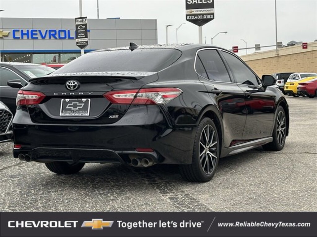 Midnight Black Metallic 2019 Toyota Camry XSE FWD 8-Speed Automatic 2.5L I4 DOHC 16V Cockpit Red w/Perforated Leather Seat Trim, ABS brakes, Air Conditioning, Apple CarPlay, Exterior Parking Camera Rear, Front Bucket Seats, Fully automatic headlights, Power steering, Power windows.Odometer is 8630 miles below market average!Awards:* JD Power Automotive Performance, Execution and Layout (APEAL) Study * 2019 KBB.com 10 Most Comfortable Cars Under $30,000 * 2019 KBB.com 10 Best Sedans Under $30,000 * 2019 KBB.com Best Resale Value Awards * 2019 KBB.com Brand Image AwardsAll of our vehicles at Reliable Chevrolet come with a 3 day/300 mile money back guarantee! If you don't like it - then we'll take it back! Vehicle must be returned to the dealer within 3 days or 300 miles in the same/original mechanical working condition. See dealer for complete details.